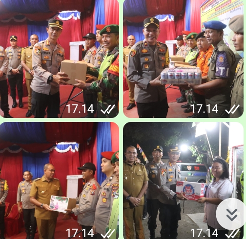 Kapolres Langkat menyerahkan bingkisan kepada setiap Pos Pelayanan sebagai bentuk dukungan terhadap personel yang melaksanakan pengamanan. “Bingkisan ini kami berikan sebagai bentuk apresiasi atas dedikasi rekan-rekan dalam menjaga keamanan dan kenyamanan masyarakat selama perayaan Natal dan Tahun Baru,” ujar Kapolres.