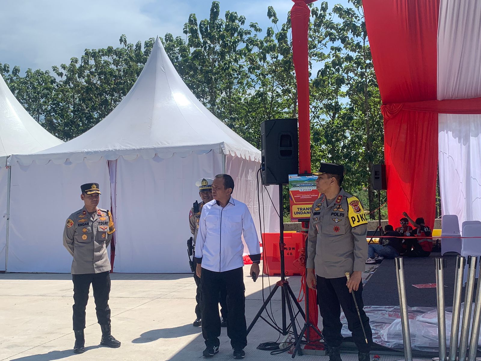Sumedang – Kapolres Sumedang AKBP Indra Setiawan, S.H., S.I.K., dan Waka Polres Sumedang Kompol Endar Supriatna, S.Kom., S.I.K., hari ini mendampingi Kapolda Jawa Barat Irjen Pol Akhmad Wiyagus dalam rangka mengecek kesiapan pengamanan kunjungan Presiden Republik Indonesia Joko Widodo ke wilayah Kabupaten Sumedang. Kunjungan tersebut bertujuan untuk meresmikan Jalan Tol Cisumdawu di Gate Tol Ujungjaya Utama. Senin (10/07/2023)