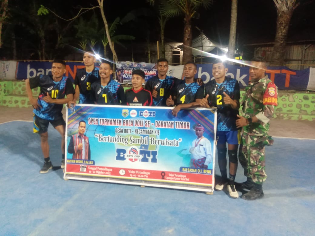 NTT.Media MitraPolisi. Com| Amanuban Tengah, 23 Oktober 2025 – Dalam rangka mendukung kegiatan kepemudaan dan mempererat kebersamaan antarwarga, Babinsa Koramil 1621-02/Amanuban Tengah, Kopda T. Marques Da Costa, hadir dan berperan aktif dalam pelaksanaan Open Turnamen Bola Voli Putra se-Daratan Timor yang digelar di Lapangan Bola Voli Kantor Desa Boti, Kecamatan Kie, Kabupaten Timor Tengah Selatan.