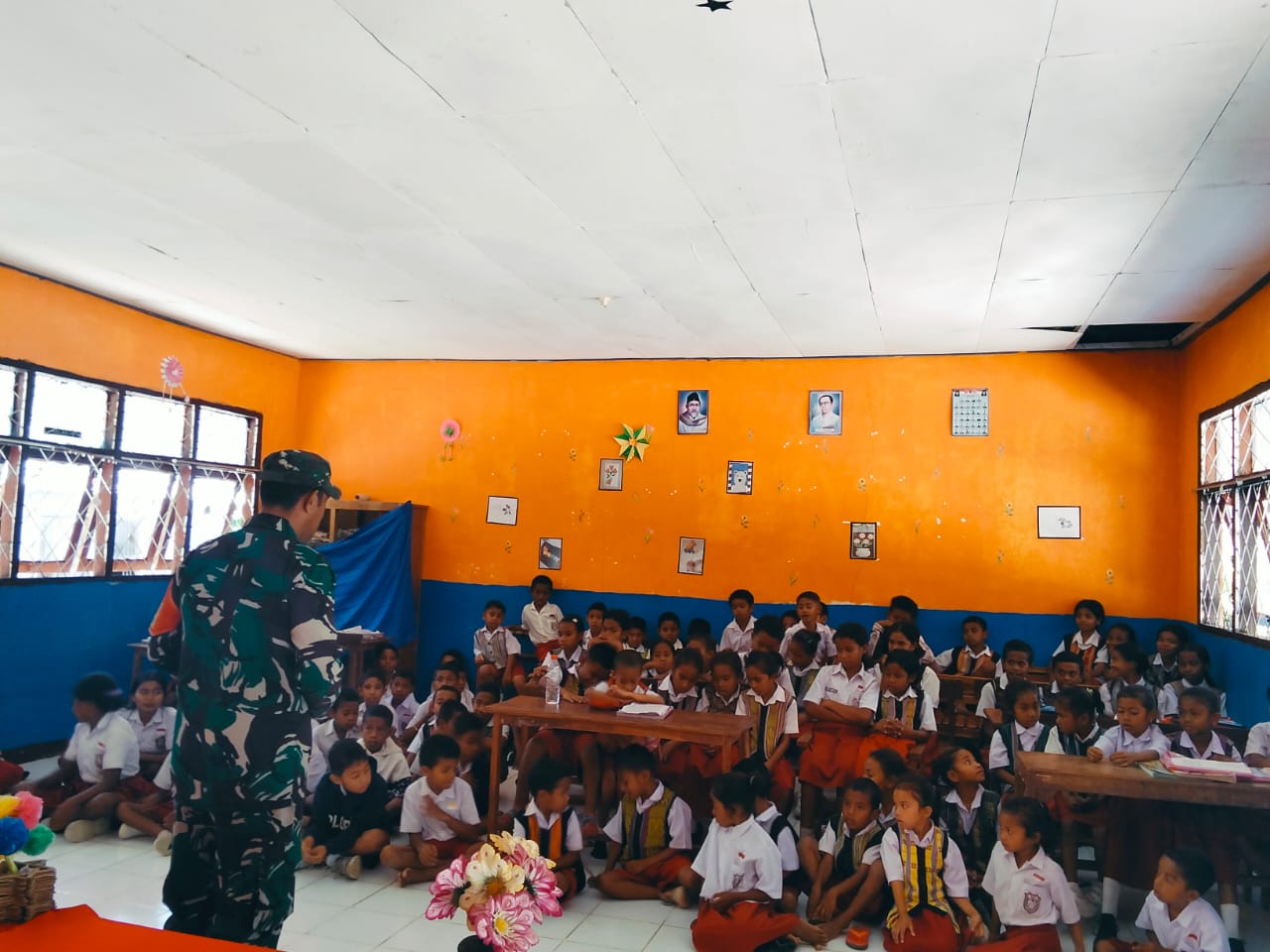 NTT.Media MitraPolisi. Com – SoE| Dalam upaya membentuk karakter generasi muda yang berakhlak dan berjiwa sosial tinggi, Babinsa Koramil 1621-01/Kota SoE Koptu Vinsensius Tateni melaksanakan kegiatan tatap muka dan penyuluhan dengan tema “Stop Bullying” di SD GMIT Nusa, Desa Nusa, Kecamatan Amanuban Barat, Kabupaten Timor Tengah Selatan (TTS), Kamis (6/11/2025).