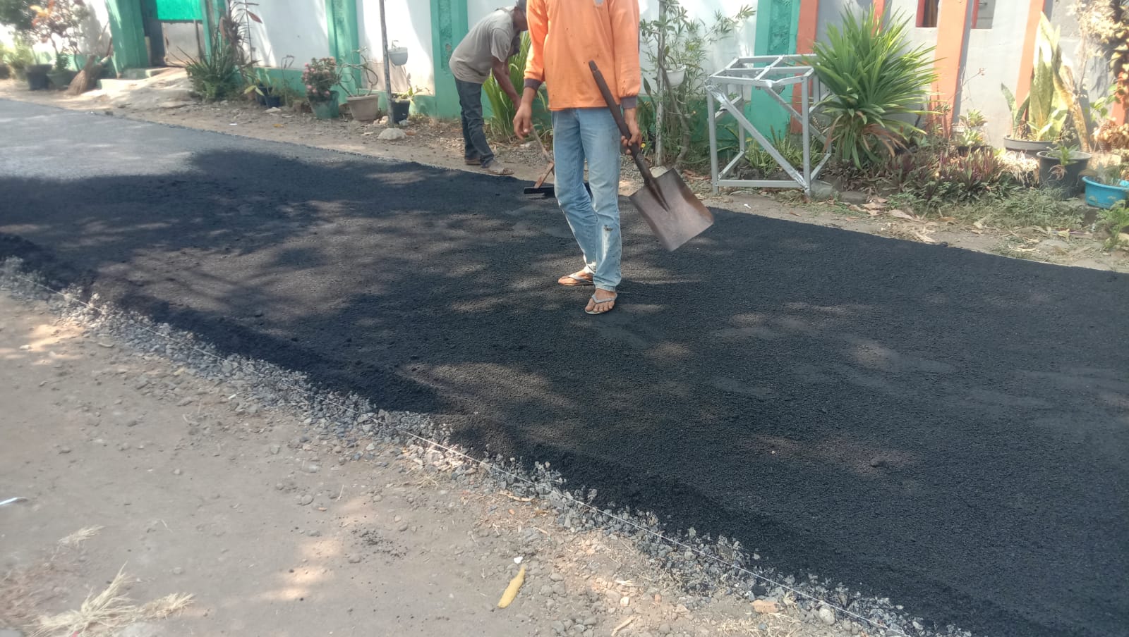 Pasalnya para pekerja tidak menggunakan alat pelindung diri (APD) bahkan pekerja juga terlalu berani hanya memakai sandal jepit di pekerjaan pengaspalan tersebut.