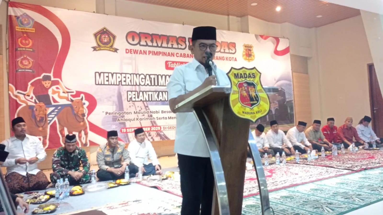 TANGERANG mitrapolisi.com, Madura Asli (MADAS) Dewan Pimpinan Cabang (DPC) Tangerang Kota menggelar Tabligh Akbar Memperingati Maulid Nabi Muhammad SAW dan Pelantikan MADAS Dewan Pimpinan Anak Cabang (DPAC) Karawaci. Jum’at, 19 September 2025.
