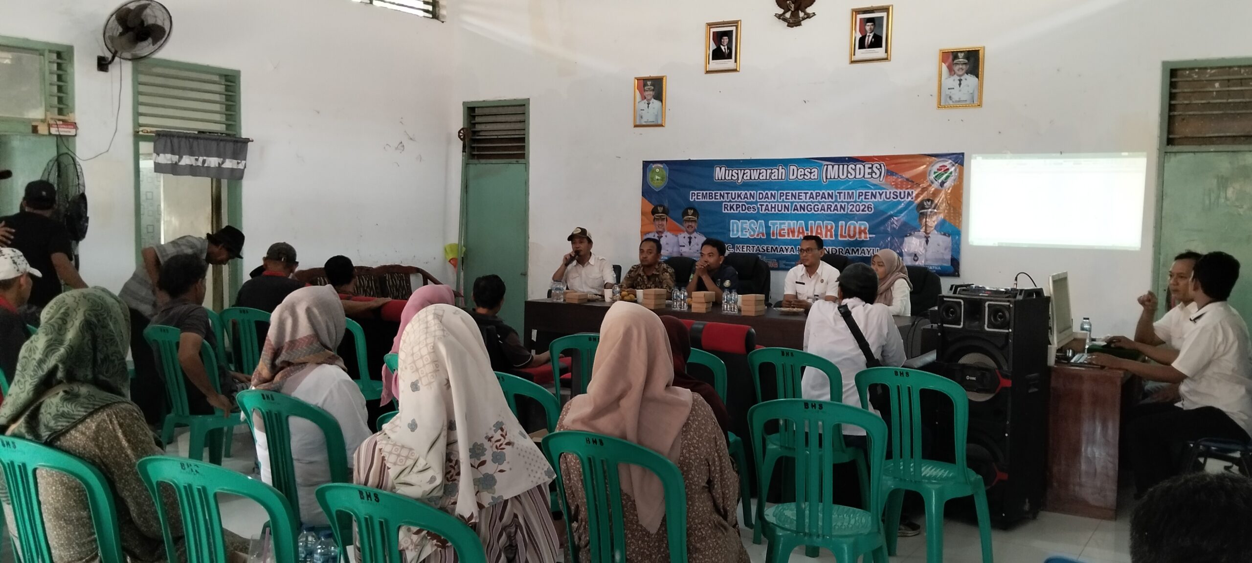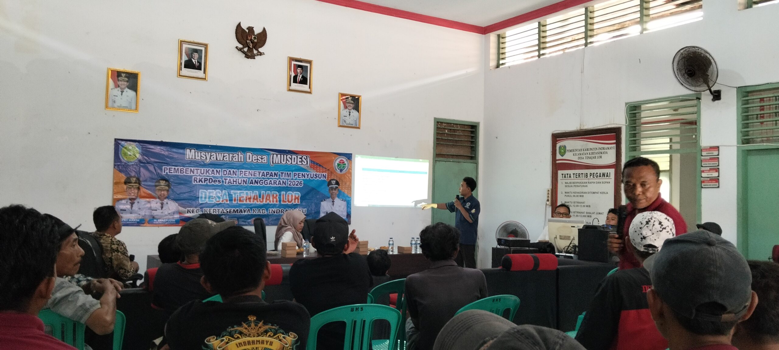Desa Tenajar Lor, Kecamatan Kertasemaya, Kabupaten Indramayu, menggelar Musyawarah Desa (Musdes) untuk menyusun Rencana Kerja Pemerintah Desa (RKPDes) Tahun Anggaran 2026. Kegiatan ini dihadiri oleh berbagai pihak, termasuk PLH Lukman Hakim, Camat Kertasemaya yang diwakili oleh Kasi Tapem dan PMD, Pendamping Desa, Babinsa, Bhabinkamtibmas, BPD, kader PKK, kelompok tani, RT, RW, tokoh masyarakat, dan perwakilan warga dari berbagai blok.