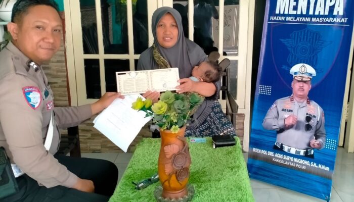 Bangkalan- mitrapolisi.com Satuan Lalu Lintas Polres Bangkalan kembali menunjukkan komitmennya dalam memberikan pelayanan terbaik kepada masyarakat. Melalui program “Polantas Menyapa”, Petugas BPKB Polres Bangkalan mendatangi pemilik BPKB yang belum mengambil dokumennya setelah menyelesaikan proses Ganti Kepemilikan Kendaraan.