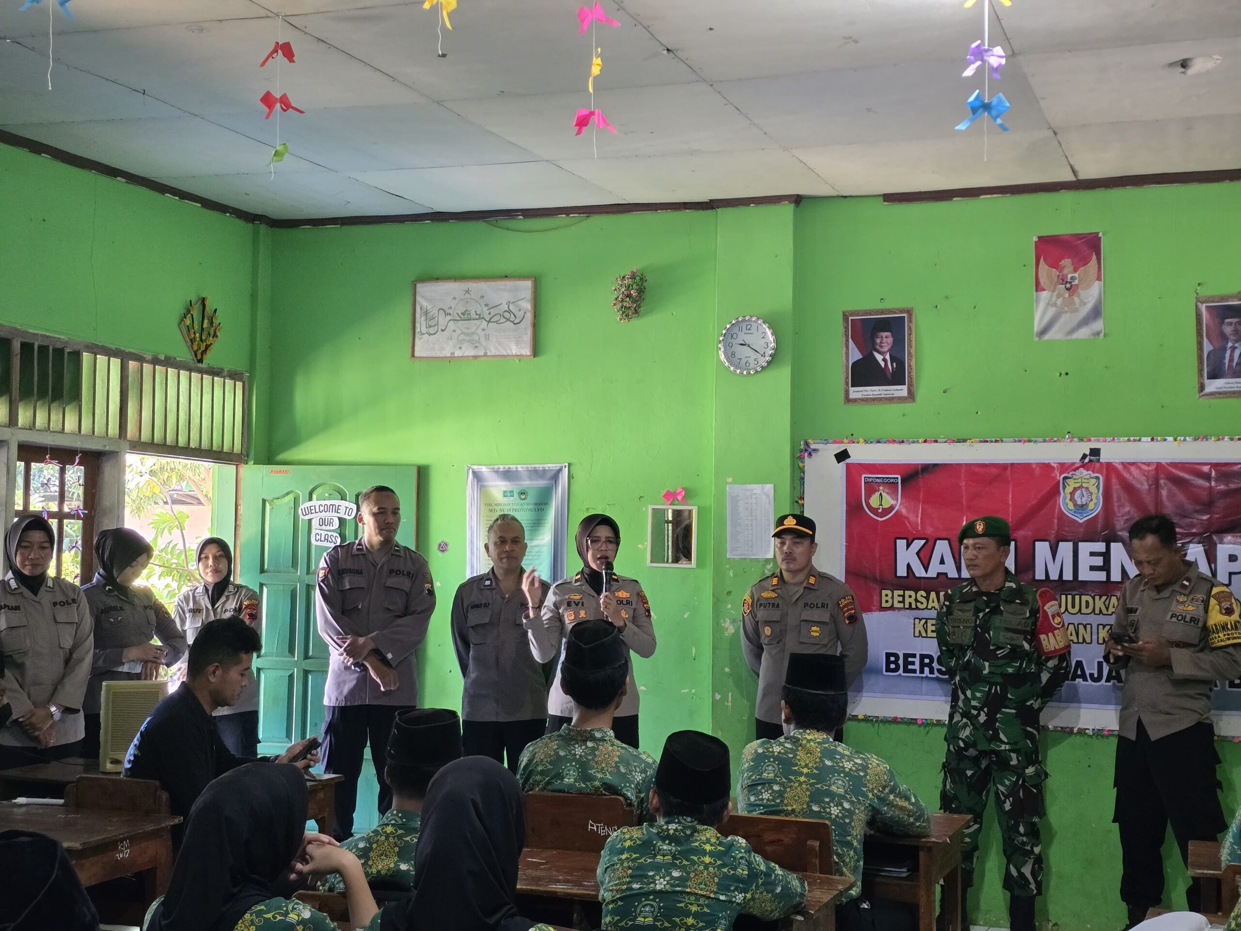 KENDAL – Kehangatan tampak menyelimuti suasana di MTs 19 Protomulyo, Kecamatan Kaliwungu, Rabu (3/9/2025) pagi. Ratusan pelajar tampak antusias menyambut kedatangan jajaran Polwan Polres Kendal dalam kegiatan bertajuk “Kami Menyapa”. Program ini menjadi ruang dialog yang penuh keakraban antara polisi dan siswa, sekaligus upaya edukasi untuk membentengi generasi muda dari pengaruh negatif lingkungan maupun dunia digital.