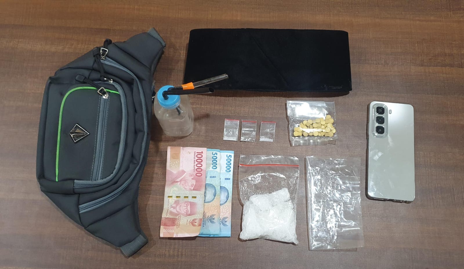 Barang Bukti yang Diamankan dari terlapor ZA adalah : Tiga (3) poket plastik klip kecil berisi sabu dengan berat total ± 0,26 gram (± 0,12 gram, 0,08 gram, dan 0,06 gram), Satu (1) alat hisap sabu (bong) dari botol plastik, Satu (1) buah kopiah warna hitam