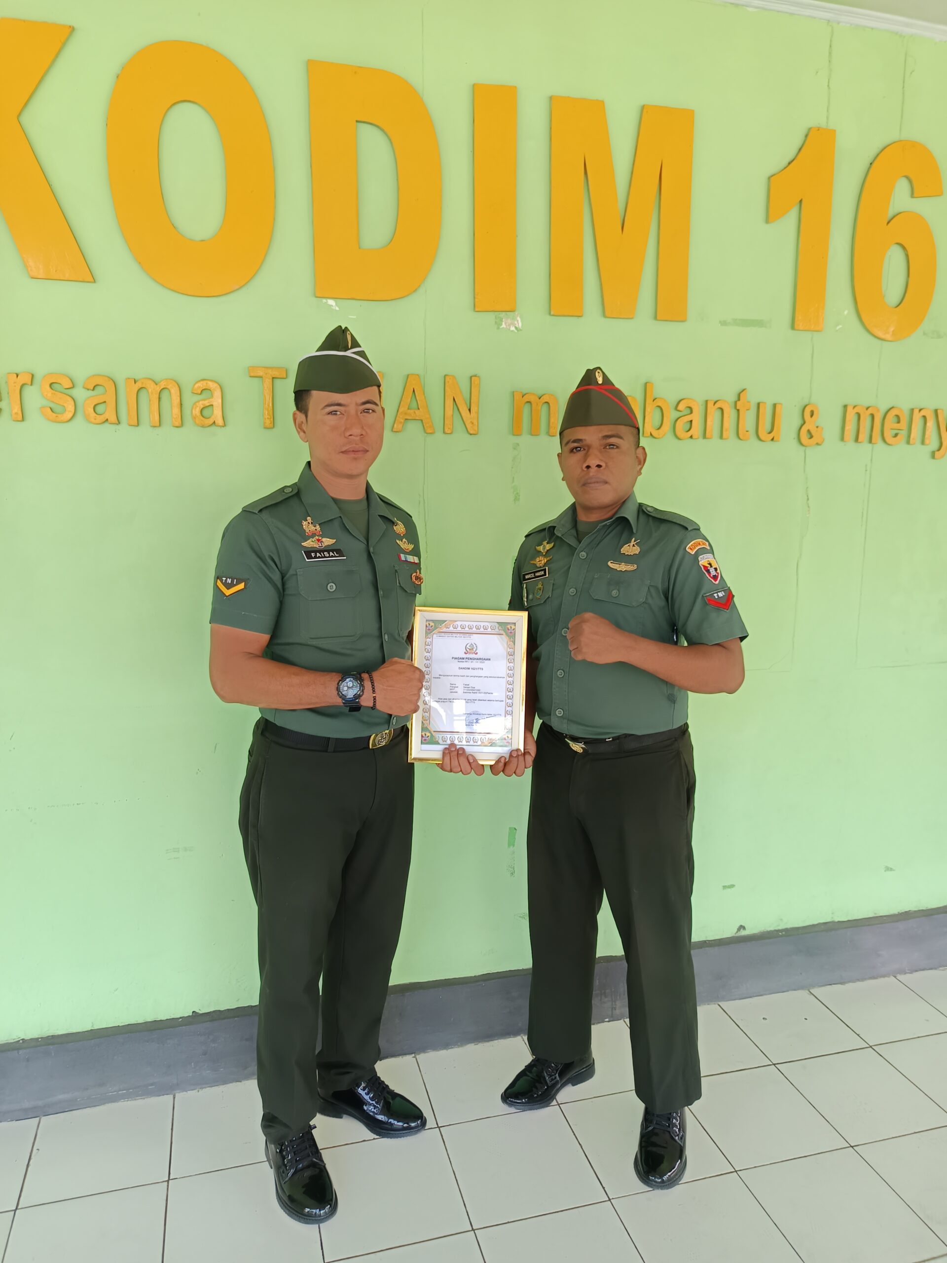 Kegiatan diakhiri dengan penyerahan piagam penghargaan, diikuti ucapan selamat dari seluruh personel Kodim 1621/TTS sebagai bentuk kebersamaan dan kekeluargaan antar prajurit.