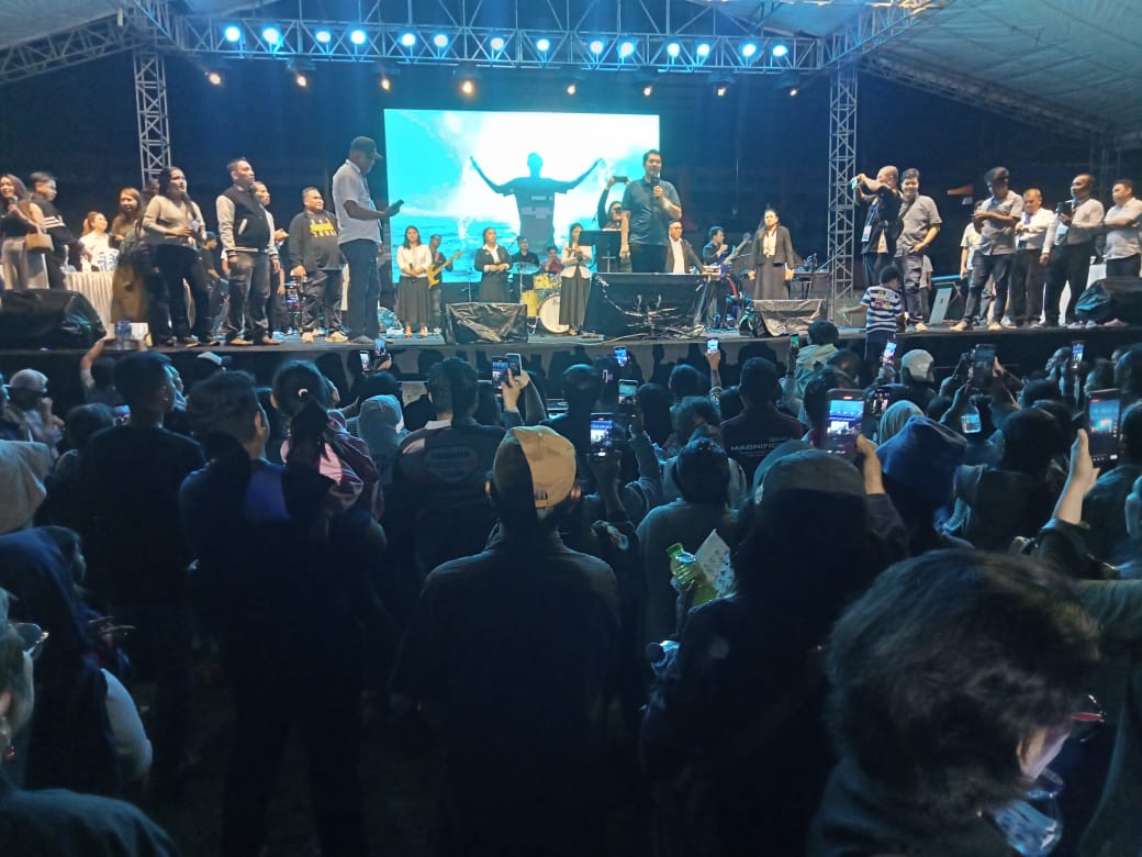 Menariknya, sekitar 3.000 jemaat yang datang dari berbagai wilayah di tiga provinsi memenuhi area stadion hingga ke luar pagar. Antusiasme masyarakat begitu tinggi, bahkan sebagian jemaat sudah datang sejak sore untuk mendapatkan tempat duduk terbaik.