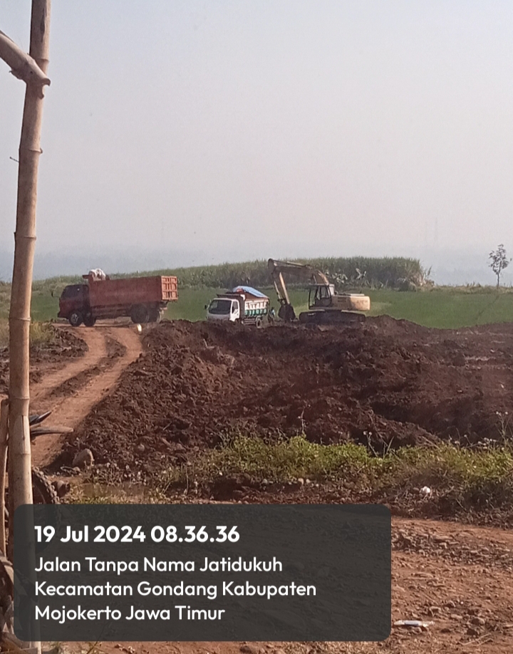 Diduga Galian C ilegal marak di mojokerto, salah satunya milik Lukman “Pungkas anak buahnya dilapangan yang berada di Desa Jatidukuh, Kecamatan Gondang, Mojokerto. Dari tempat lokasi pengerukan tanah (galian C) terdapat satu alat berat Excavator dan beberapa Dam truck yang berlalu lalang mengangkut hasil tambang tersebut. Jumat (19/07/24) Pukul 08: 51 WIB.